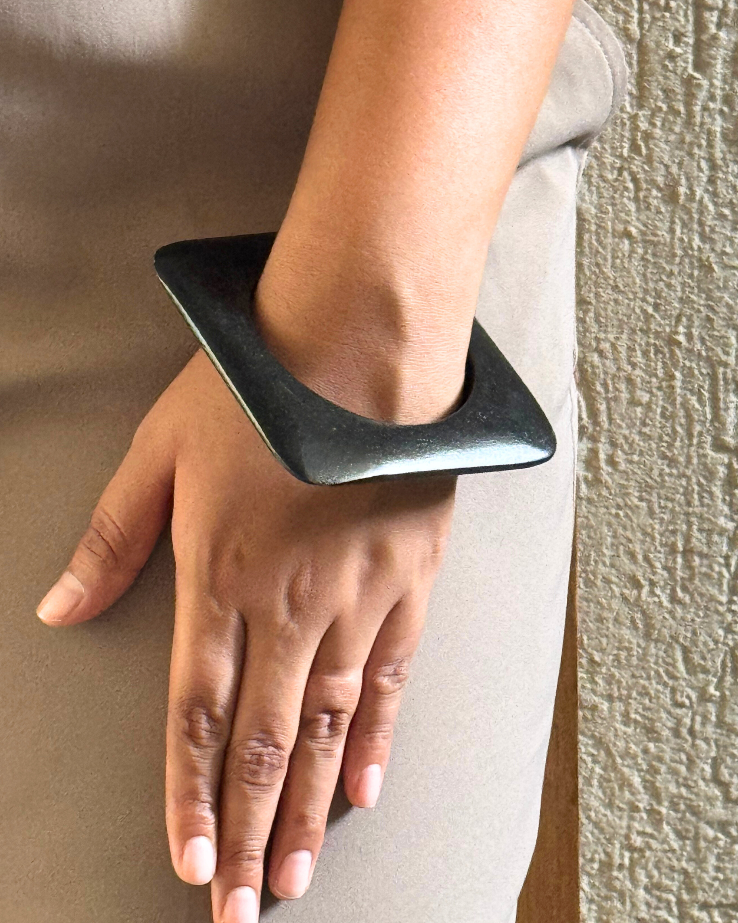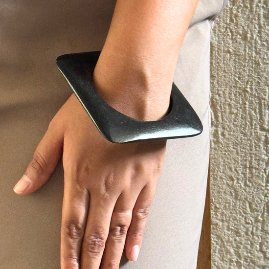 Agira Black Wooden Bangle: Handcrafted from premium-quality wood, this bangle features a sleek matte black finish that effortlessly complements ethnic and contemporary looks.
