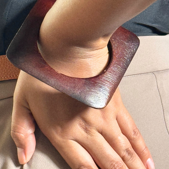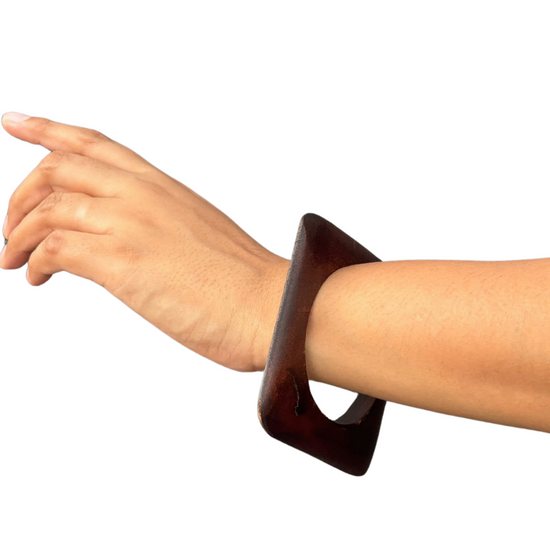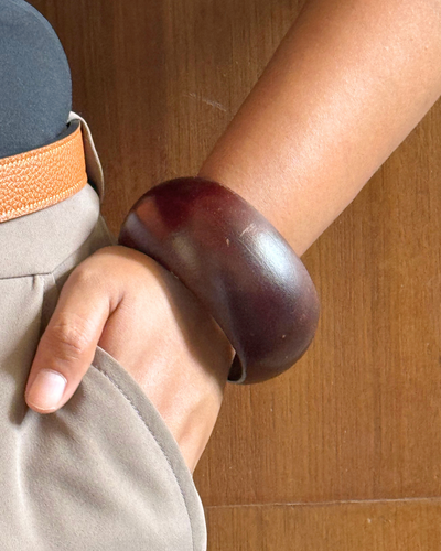 Agira Brown Wooden Bangle: Handcrafted from premium-quality wood, this bangle features a sleek matte black finish that effortlessly complements ethnic and contemporary looks.