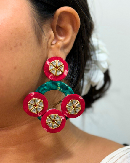 Add a splash of vibrant tradition to your look with the Chashni Bandhej Earrings, a unique accessory that combines timeless Bandhej fabric with contemporary design. These handcrafted earrings celebrate the rich heritage of Bandhej art, showcasing intricate patterns in vivid colors for a statement-making appeal.