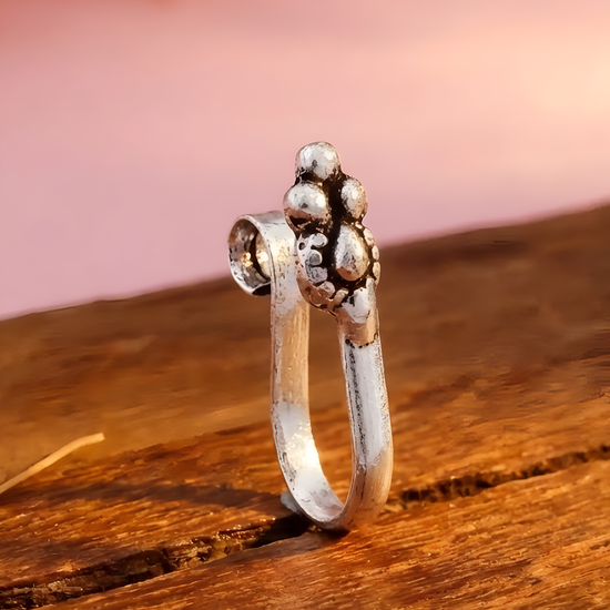 Daya Nose Pin is a tribal masterpiece. The nosering is adjustable.