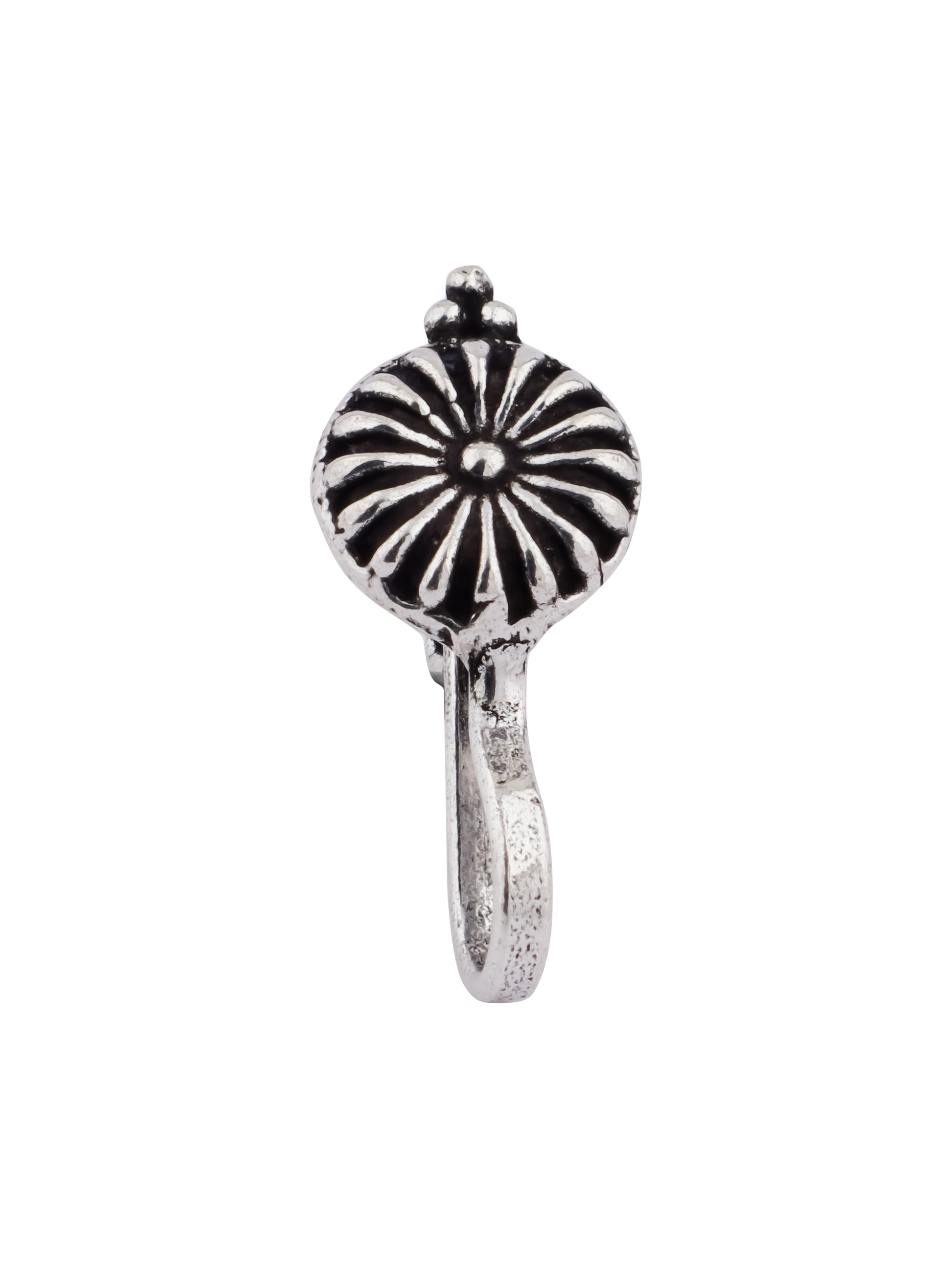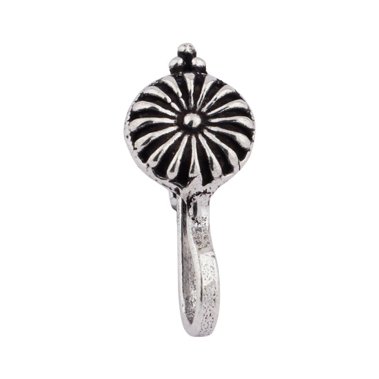 The Kumud Nose Pin features a beautiful tribal design. The nose pin is adjustable.