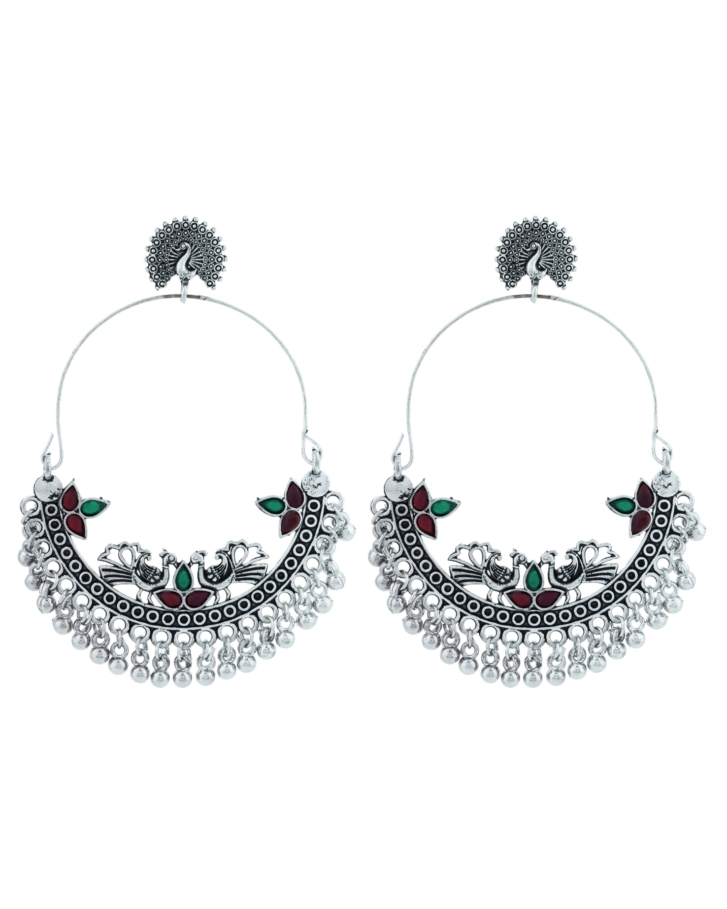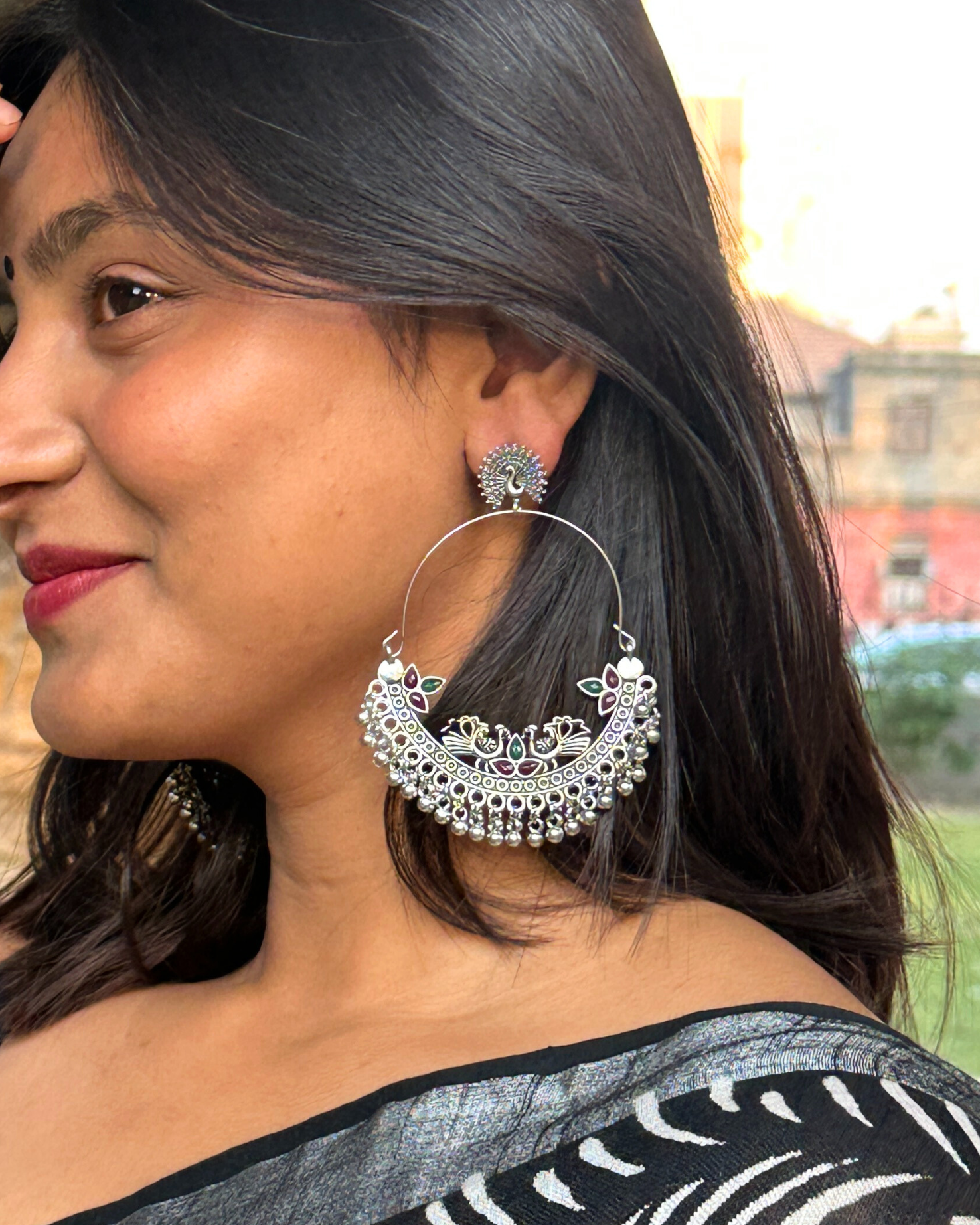 Inspired by the majestic peacock, the Morni Chandbali blends elegance with tradition. With intricate detailing and a regal crescent silhouette, this exquisite piece adds a royal charm to your look. Perfect for making a statement at festive and celebratory occasions