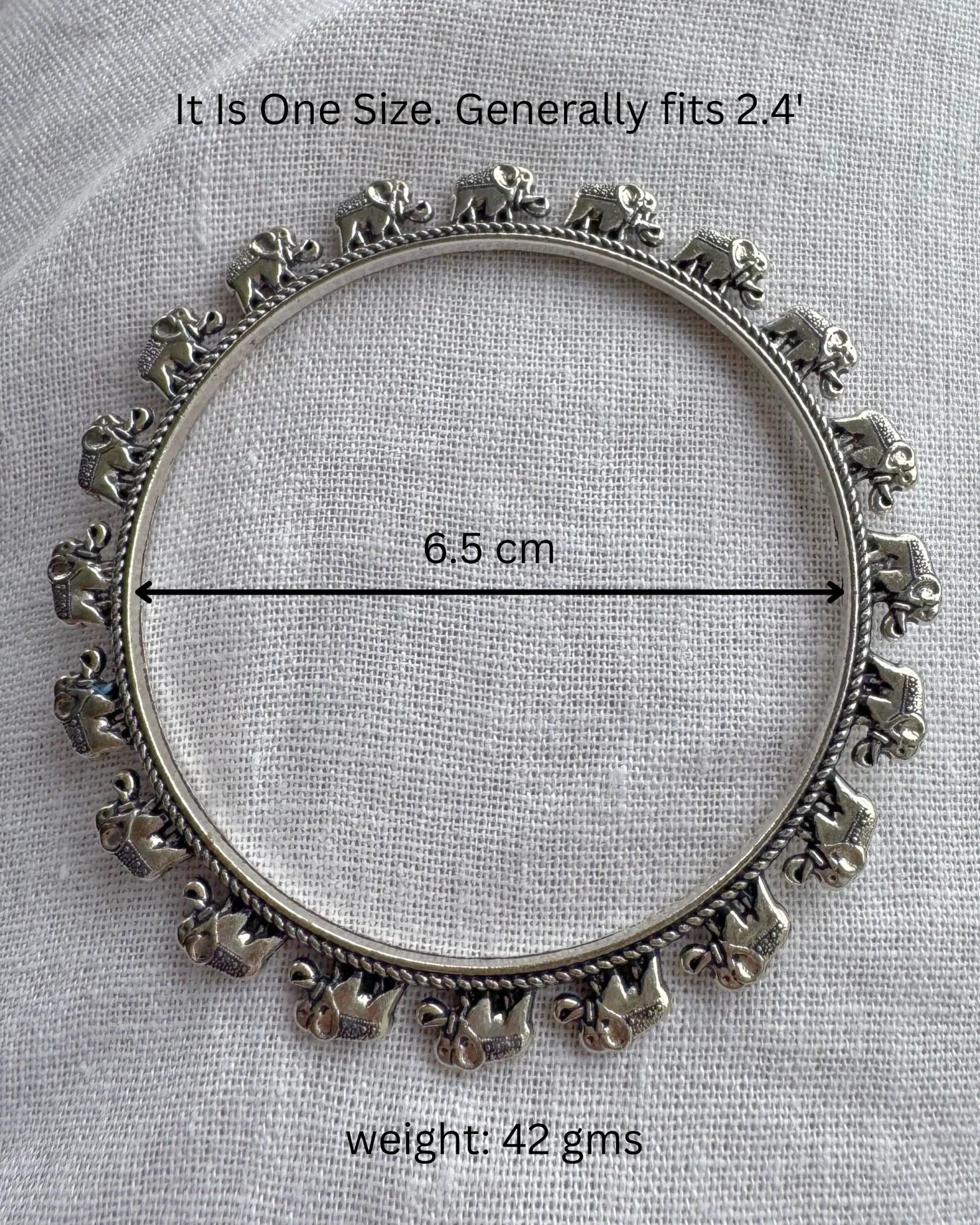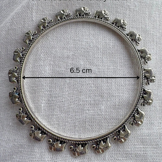 Detailed elephant motifs with an oxidised silver finish