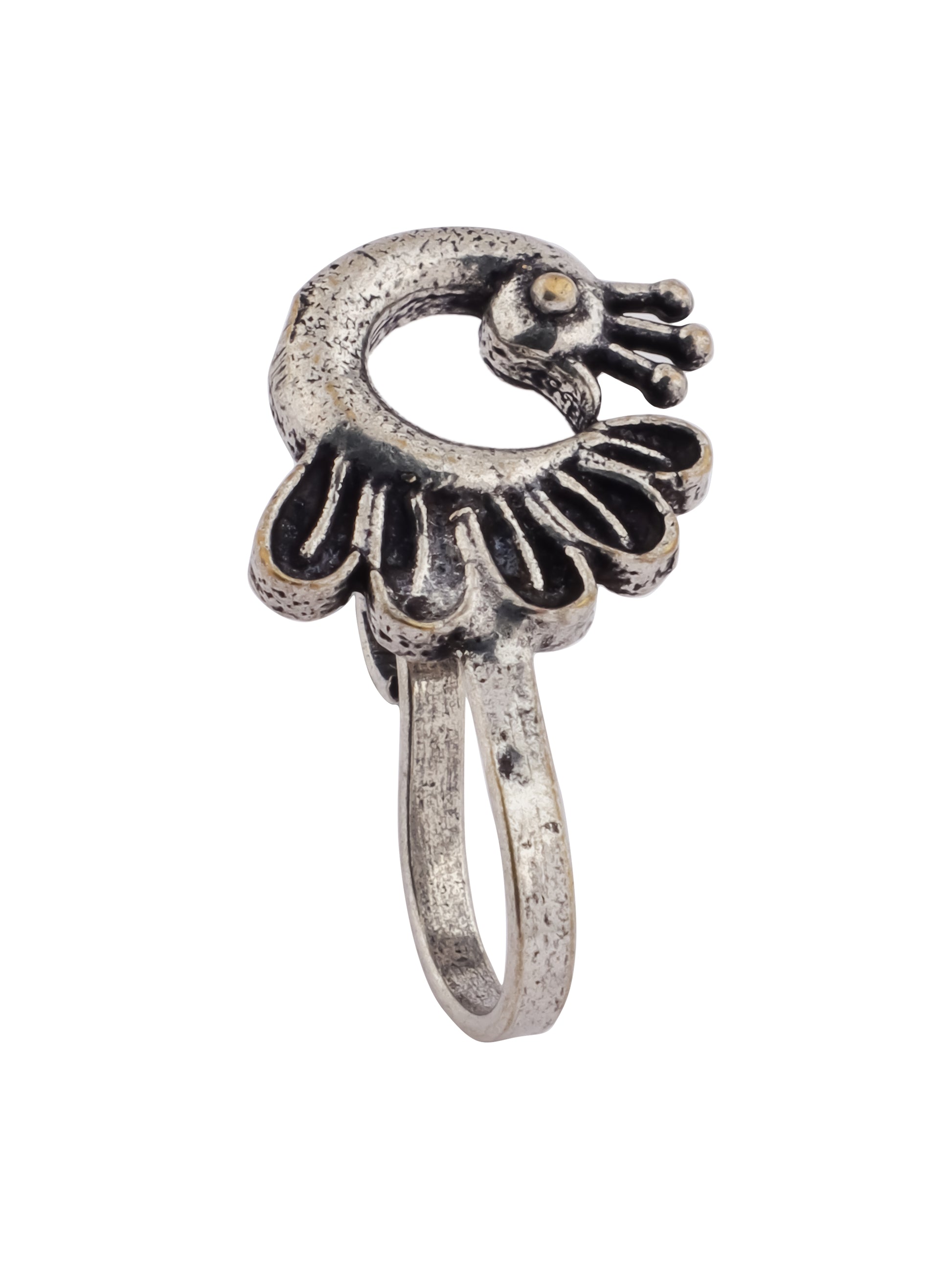 Pihu Nose Pin is a beautiful tribal peacock nose ring that is adjustable.