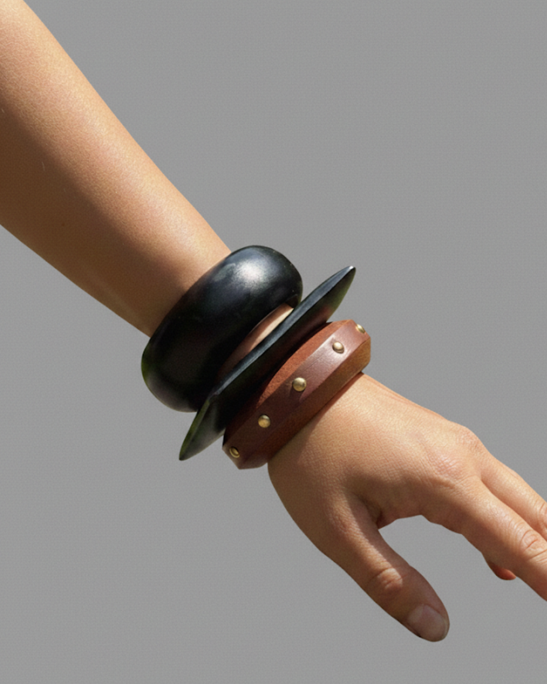 Matte and flat black bangles for contrast