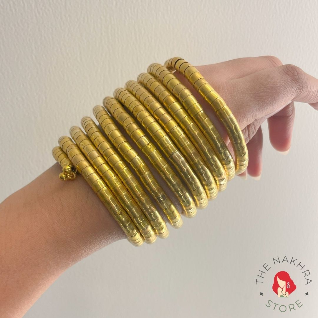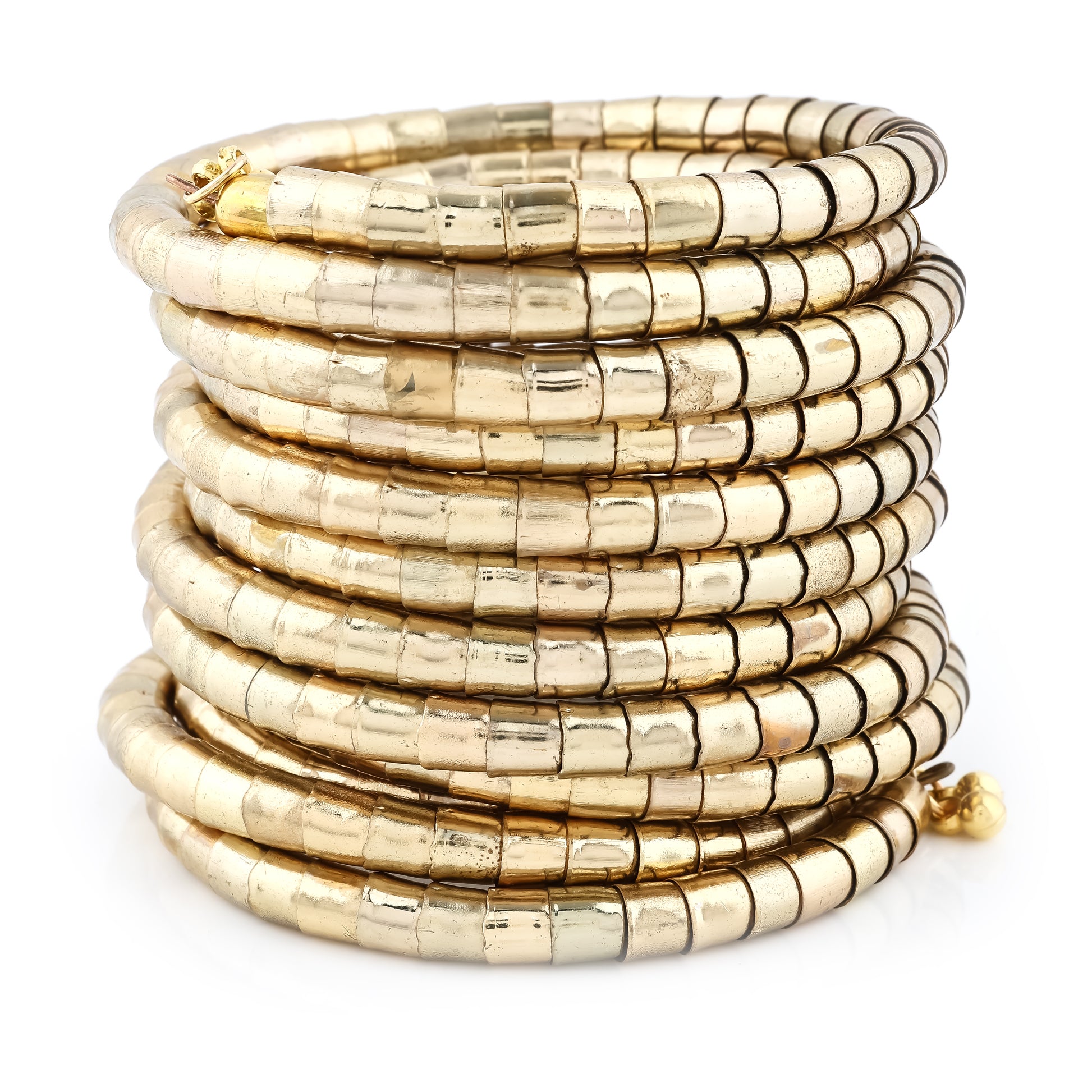 Golden completely adjustable spiral bangle (anti-tarnish). Embrace the allure of these captivating spirals and let your wrists sparkle with unmatched beauty
